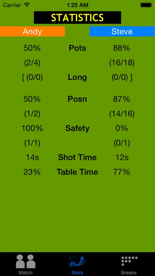 MySnookerStats can track every ball you pot and every shot you play, delivering you up-to-the-second stats like you see on TV. It's so easy-to-use that you'll never want to play another frame without it - you keep score while your opponent is at the table, then swap when it's your turn to clear up.