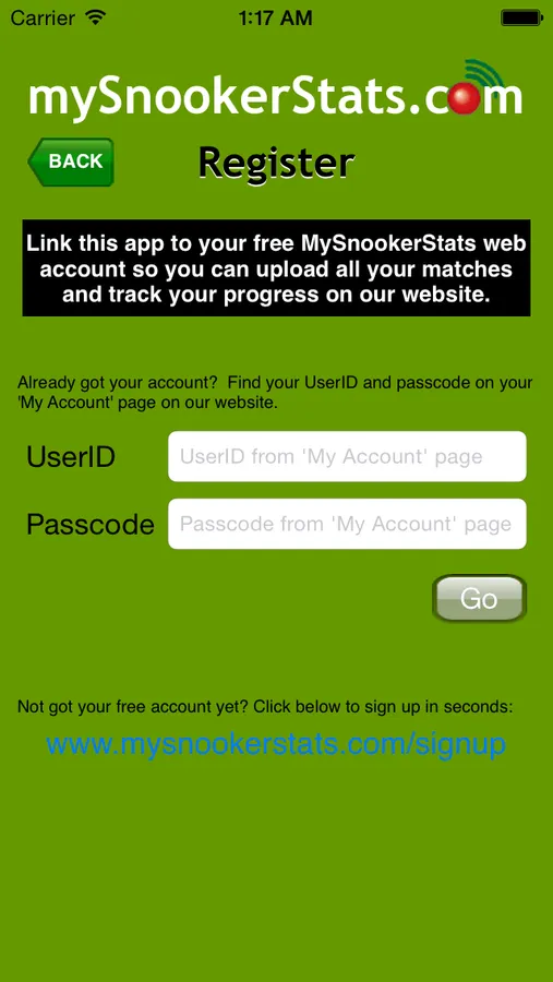 - store your name and membership id, and the names, ids and handicaps of the last 50 players you've faced so that setting up for re-matches is a breeze.