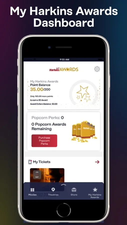 The Ultimate Moviegoing® experience starts here! The Harkins Theatres App is the best way to view showtimes, buy tickets, watch trailers, manage your My Harkins Awards account, find out about the latest movies, events and exclusive film series.