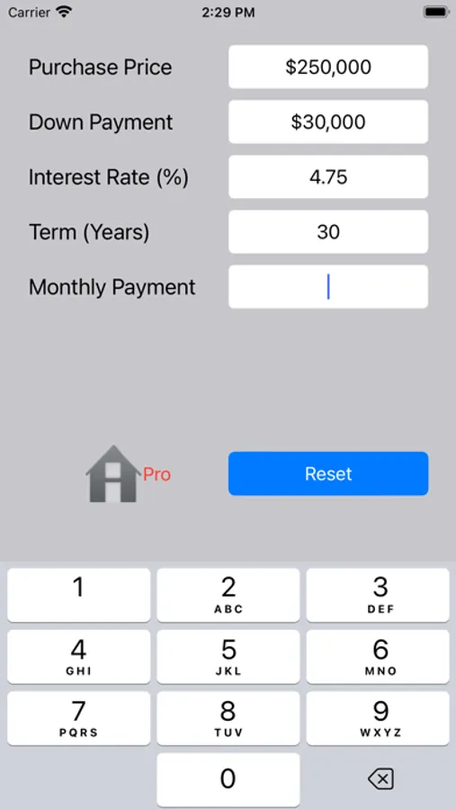 1.) Monthly payment - from down payment, interest rate, term & house price