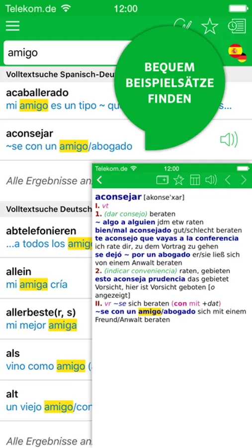 • Beide Übersetzungsrichtungen (Deutsch - Spanisch und Spanisch - Deutsch)