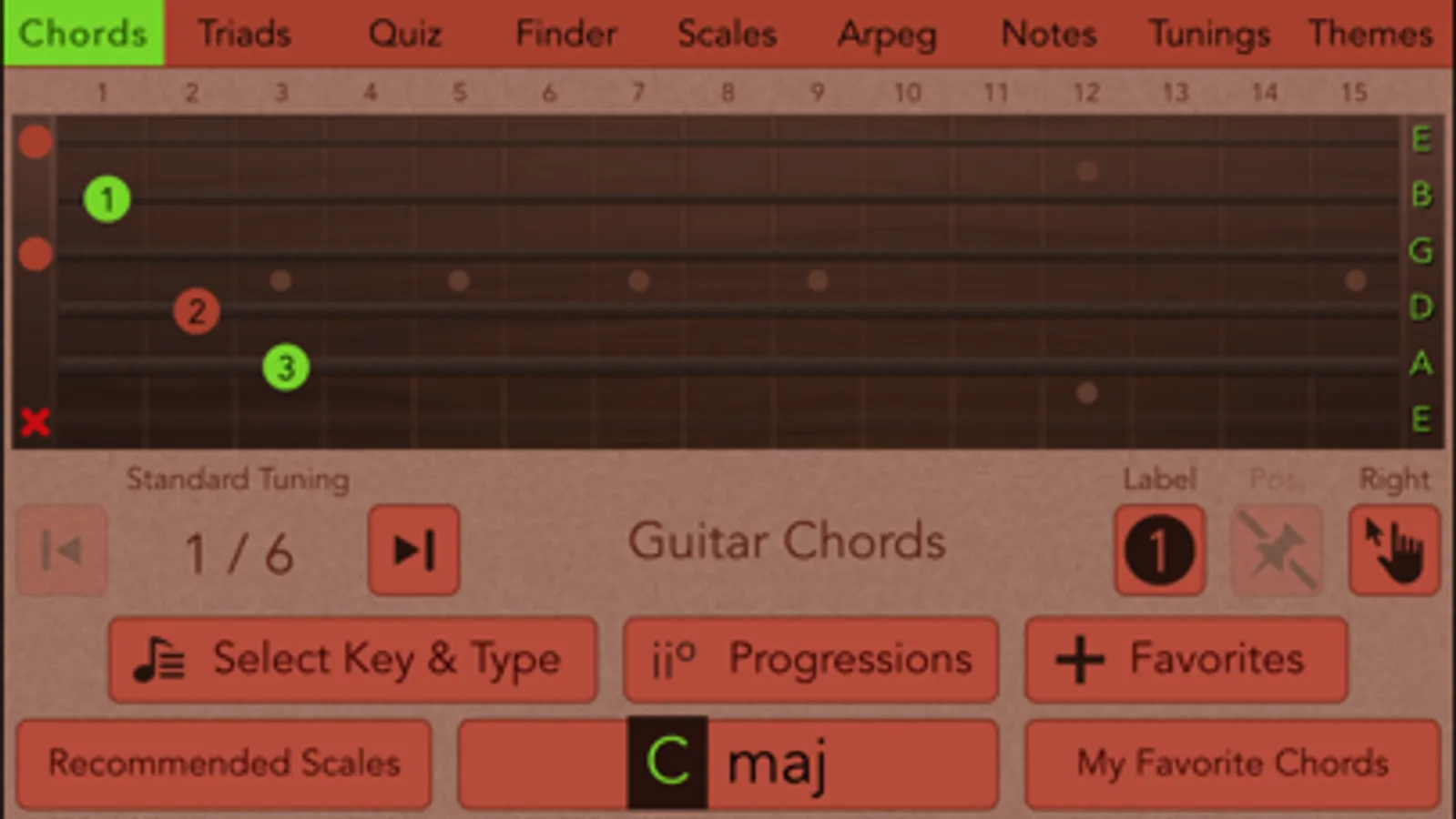 ALL-IN-ONE Package: Guitar Chords, Chord Progressions (new) Scales, Triads, Arpeggios, Notes On The Fretboard, Reverse Chord Finder Tool, Chord Quiz, Alternate Guitar Tunings and Chord Scale Relationships.