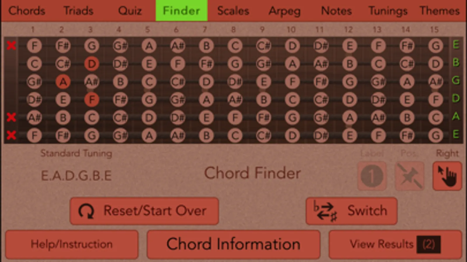 + Reverse Chord Finder Tool: Don't know a way to find out the names of chords you've come up with? This tool will help. Just enter your notes on the fretboard that make up a chord, and app will tell you what chord name is!