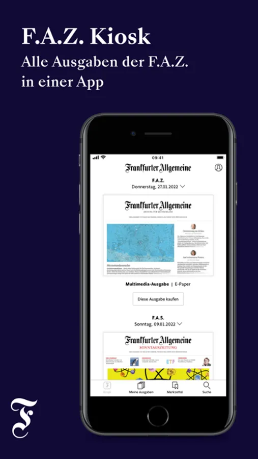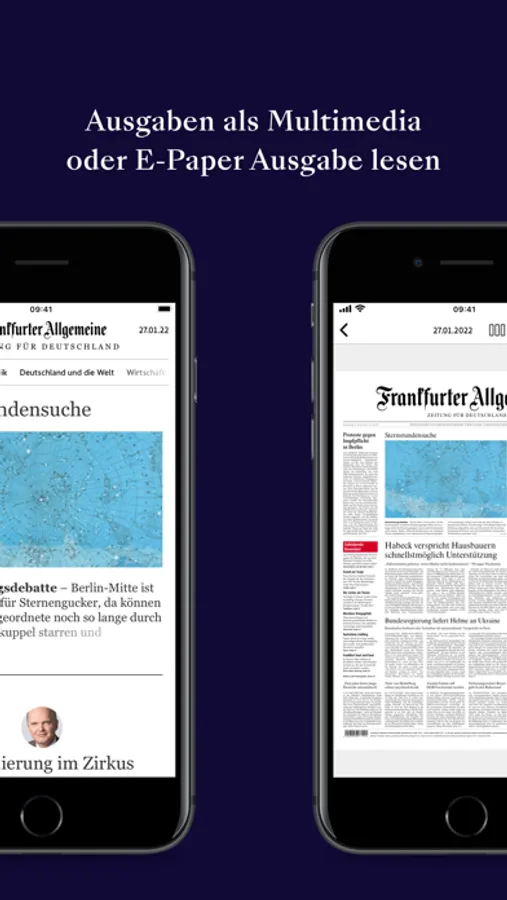 - Im Design Ihrer Wahl: Lesen Sie die Ausgaben der F.A.Z. und der F.A.S. als klassisches E-Paper oder im digital optimierten Multimedia-Format mit zusätzlichen Inhalten