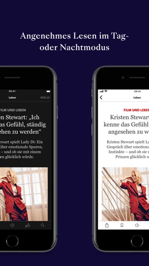 - Nachmodus: Für ein komfortables und augenschonendes Lesen unterstützt die App den Darkmode.