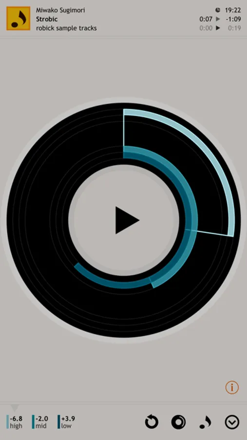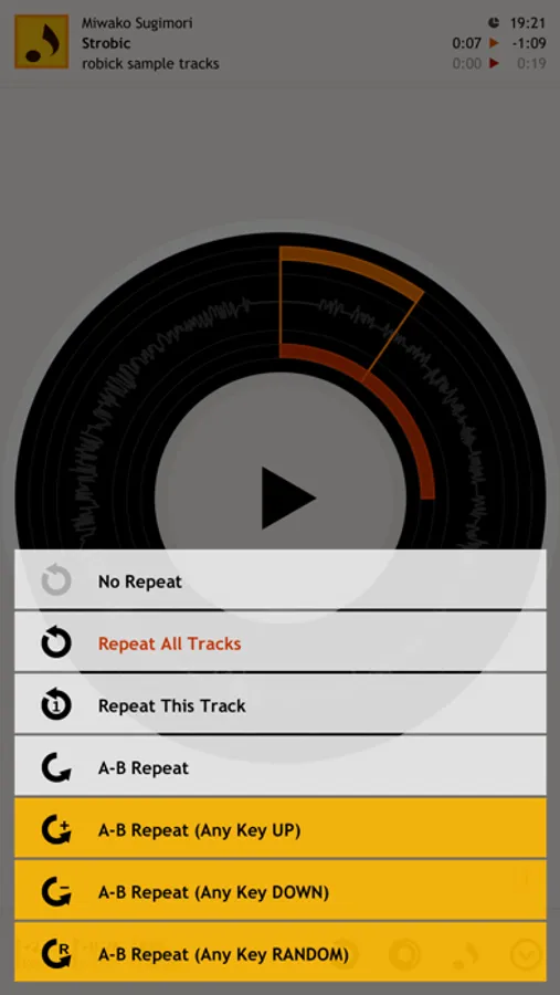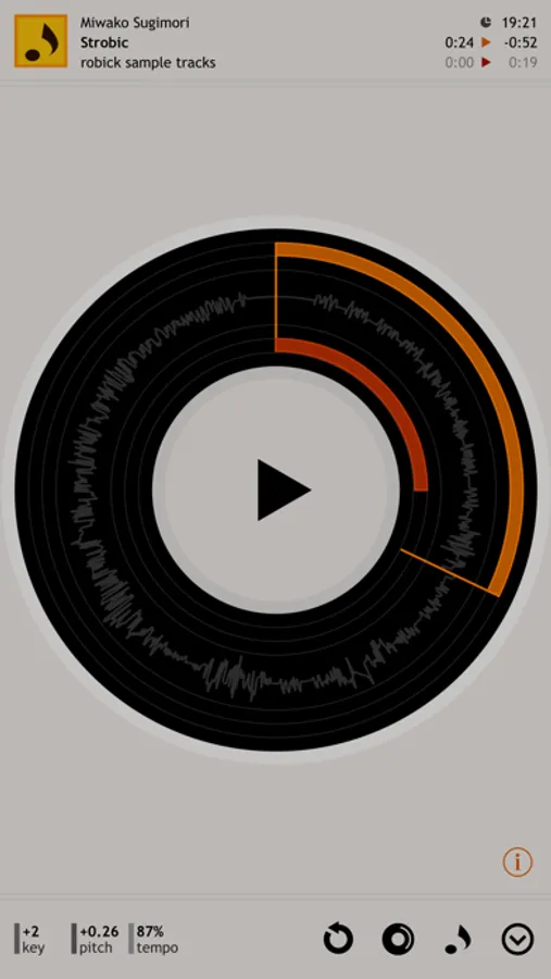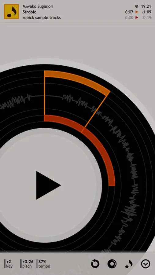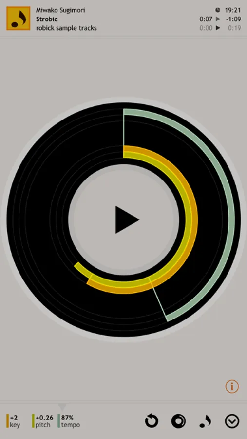 Repeat playback , change key and tempo with wheel interface and you can control visually.