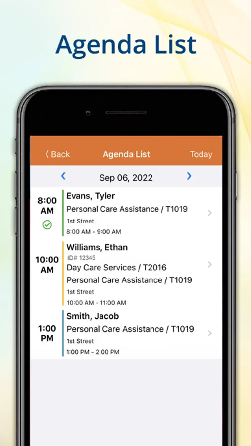 • Access to view schedules for a particular date on the Agenda List page
