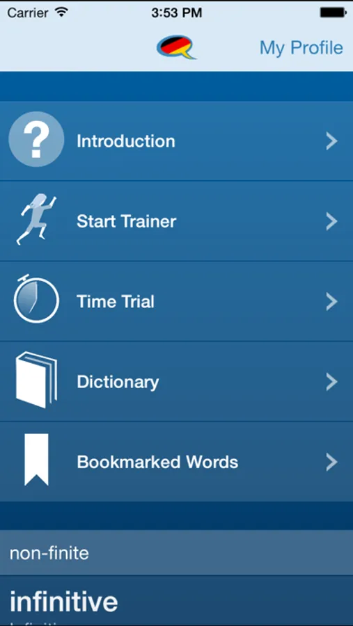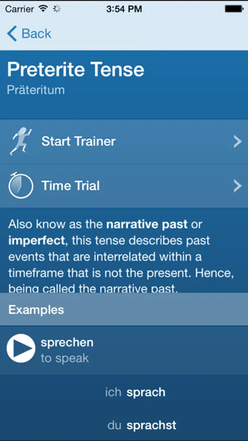 The GERMAN VERB CONJUGATION TRAINER is the award winning app that makes mastering GERMAN VERBS simple and fun, designed especially for BUSY STUDENTS on the go, around the school or abroad.