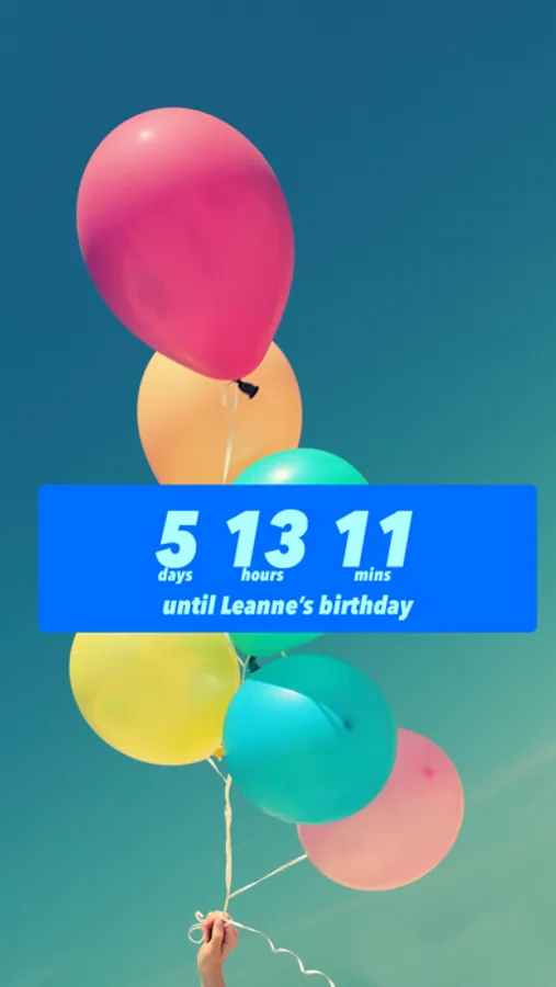 Birthday Countdown is an app that lets you count down to birthdays in style! Never miss a birthday again and have a blast celebrating!