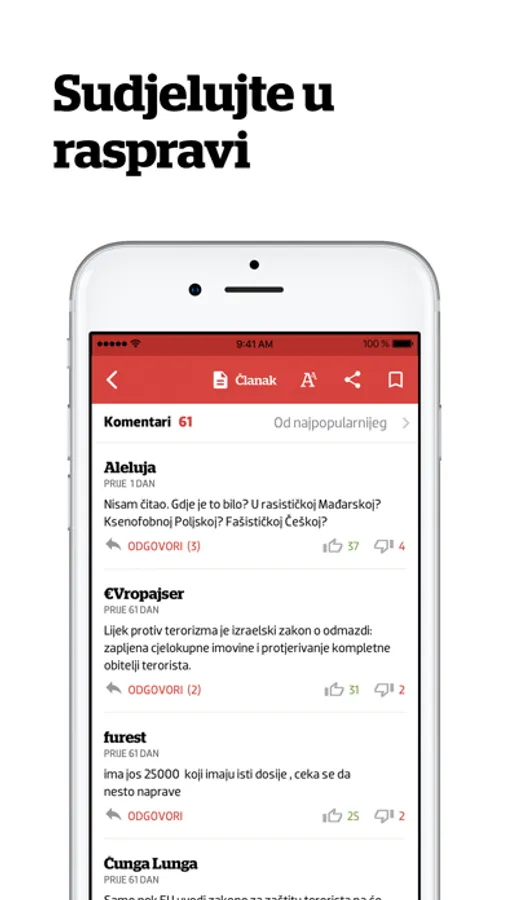 Kroz aplikaciju možete pratiti sve rubrike sadržaja sa portala vecernji.hr, te pratiti vijesti prema autoru, podrubrici ili prema ključnoj riječi. Sudjelujte u raspravi tako da se prijavite sa korisničkim računom sa portala vecernji.hr