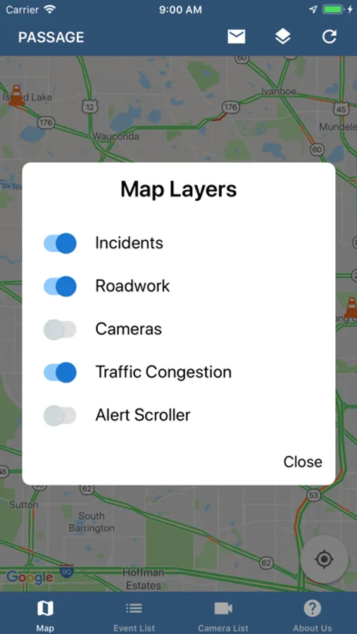 PASSAGE is an Intelligent Transportation System, designed to provide motorists real time traffic congestion information for Lake County, IL.