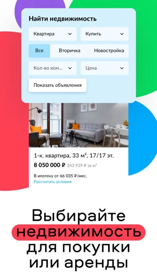 • Находите жильё в удобном районе. На Авито продают и сдают в аренду квартиры, комнаты, дома, дачи и нежилые помещения. Объявления отмечены на карте — вы увидите, есть ли рядом школы, парки и остановки транспорта.