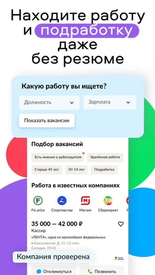 • Ищите работу и сотрудников. Приложение поможет отыскать бухгалтера, грузчика, водителя или пионервожатого. Если вы ищете удалённую работу или занятость на полный день, выбирайте из вакансий рядом с домом или в другом городе, если готовы к переезду.