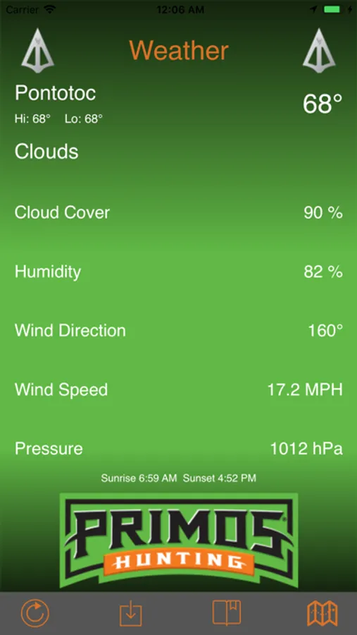 Two hours stalking that big buck, and then he gets a whiff of your scent and he's gone? Never again, with this handy app from the mobile app team at Primos Hunting. No matter what game you are hunting, knowing the wind direction and speed are crucial to keeping the upper hand. This app will provide you with the wind direction and speed for your current location in a simple, intuitive way using your iPhone's built in compass.