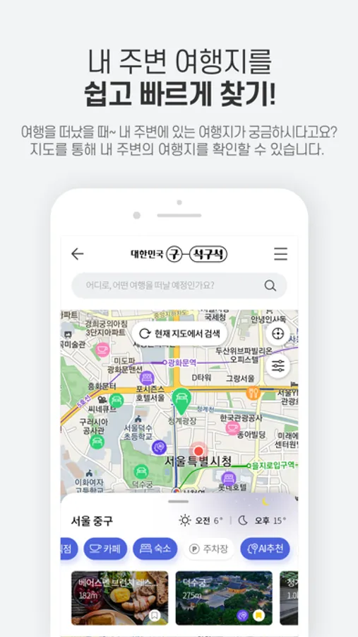 7) 사용자 위치를 기준으로(GPS) 관광지, 음식, 숙박, 축제/행사 등의 여행정보 제공 및 내비게이션/지도/길안내 서비스 제공