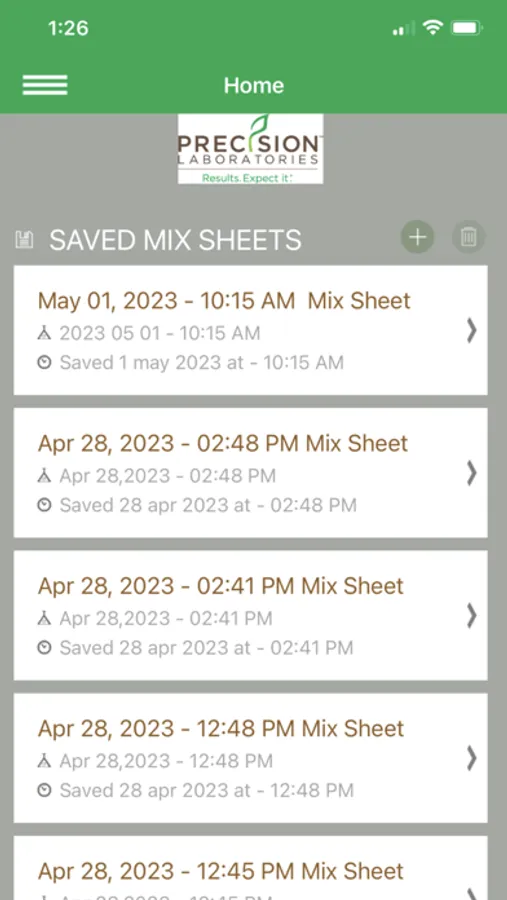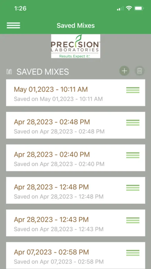 Mix Tank, from Precision Laboratories, is designed to assist agricultural applicators with the proper tank mixing sequence of crop protection products. Mix Tank also captures product use rates and application information with Mix Sheets and conveniently maintains accurate Spray Logs for easy record keeping.