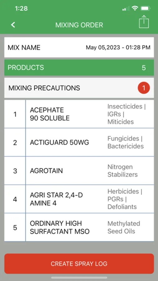 •Mix Guide: receive a recommended mixing order based on the products selected