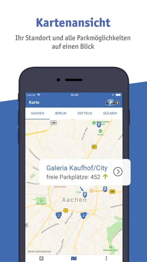 Finden Sie Ihren Parkplatz in den Parkhäusern der APAG.