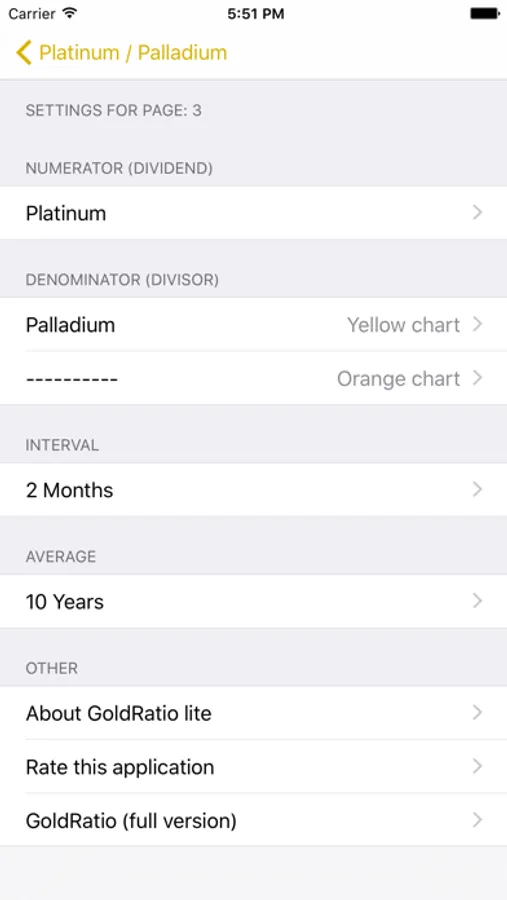 GoldRatio lite shows up to 3 different ratio charts (15 in the full version).