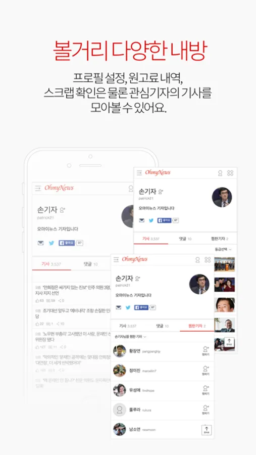 - 기자의 미니 프로필에서 관심 기자를 ‘찜’하세요. 찜한 기자의 기사를 한번에 모아볼 수 있는 구독 기능을 제공합니다.