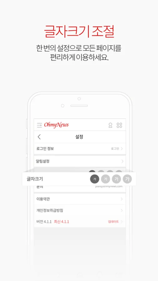 사용 중 불편한 사항이 있거나 서비스 개선 아이디어가 있으신 분은 메일(ohmyapp@ohmynews.com)로 연락 주세요.