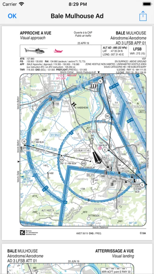 Helivac est une application gratuite qui stocke au premier lancement toutes les cartes VAC françaises et qui privilégie avant l’affichage la vérification par Internet que la carte stockée est la dernière version disponible.