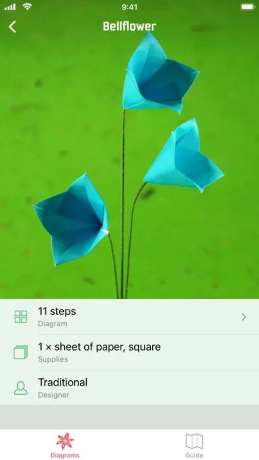 Origami is the ancient art of paper folding. This app includes diagrams for creating your own work of art. Learn how to turn ordinary paper into beautiful origami flowers.