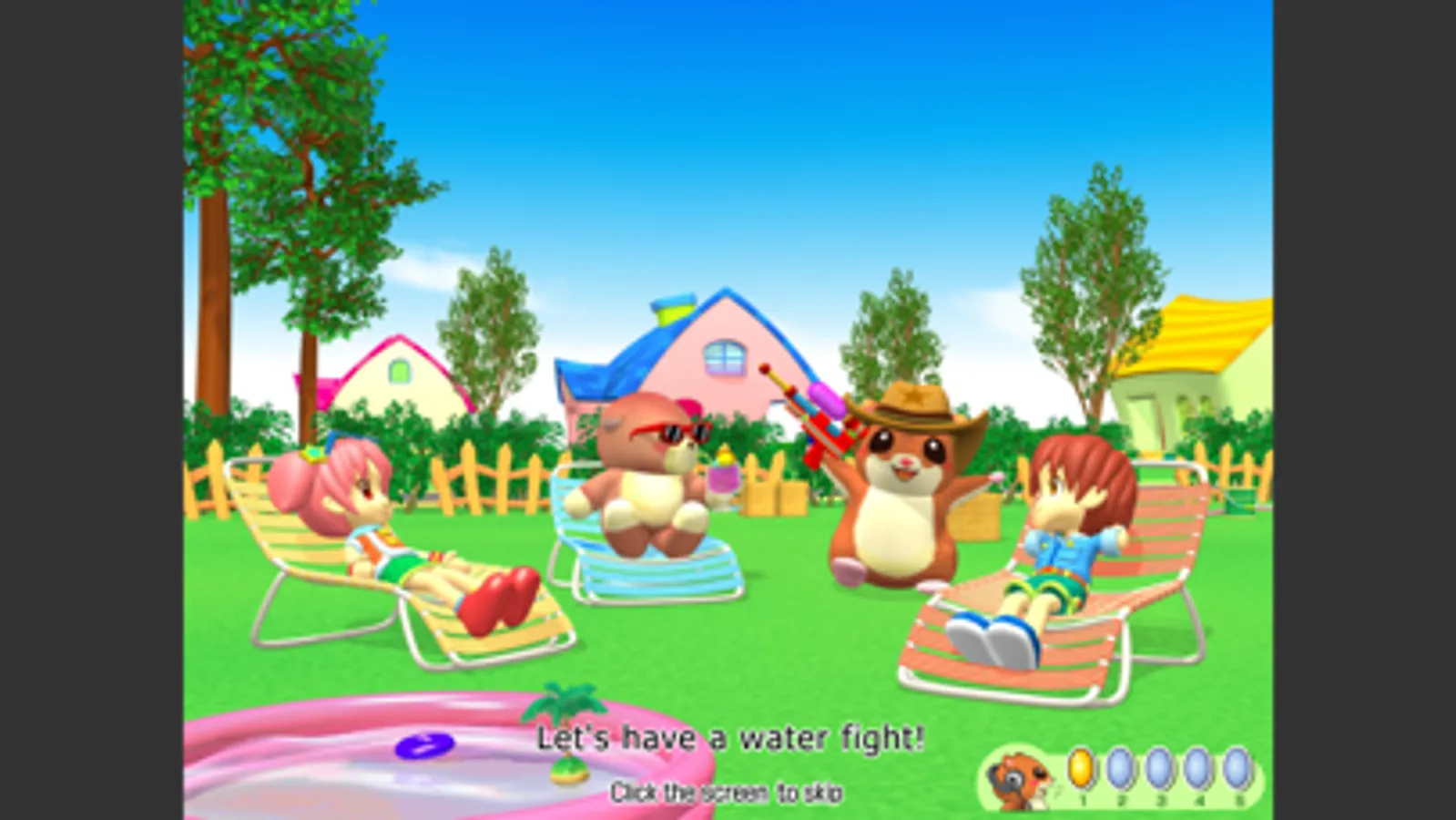 Face off with the rambunctious Hamham and his friends in the water pistol game.
