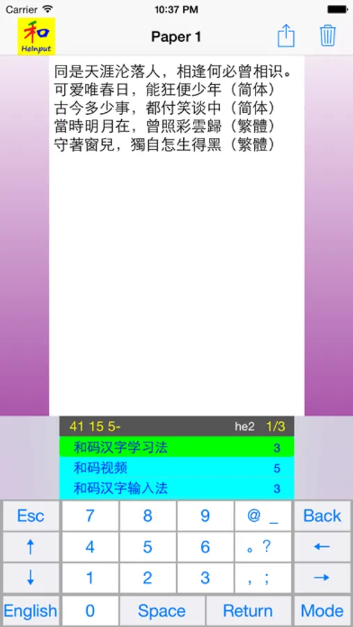 HeInput application is suitable for all Chinese learners and users. HeInput application is adapted to both Simplified and Traditional Chinese, HeInput is widely used for study and typing Chinese.