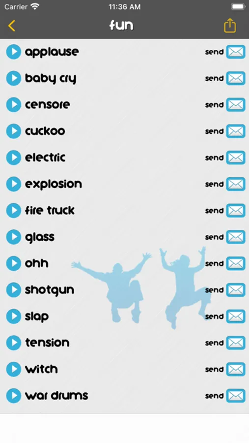 FunSounds has 13 categories: Fun, Animals, Silly, Instruments, Cartoons, Horror, Alarms, Movies, Love, City, People, Robots and Religion. Each category has many different fun sounds. Click on the buttons to play the sounds, and send the sounds to their iPhone, iPod and iPads. Trick people, do pranks, amuse the long meetings.
