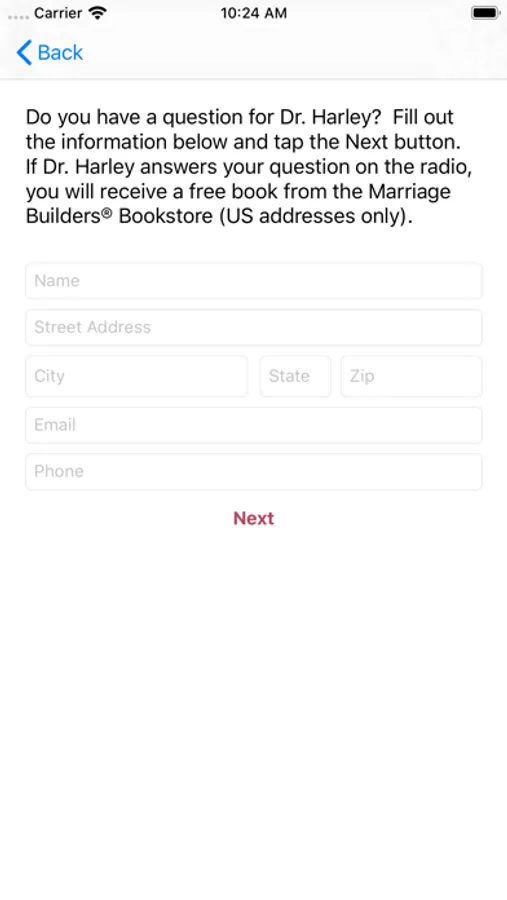 The Marriage Builders Radio app is also you way to submit a question directly to Dr. Harley. And as a BONUS, if your question is answered on the radio program, you will be sent a free book from Marriage Builders!