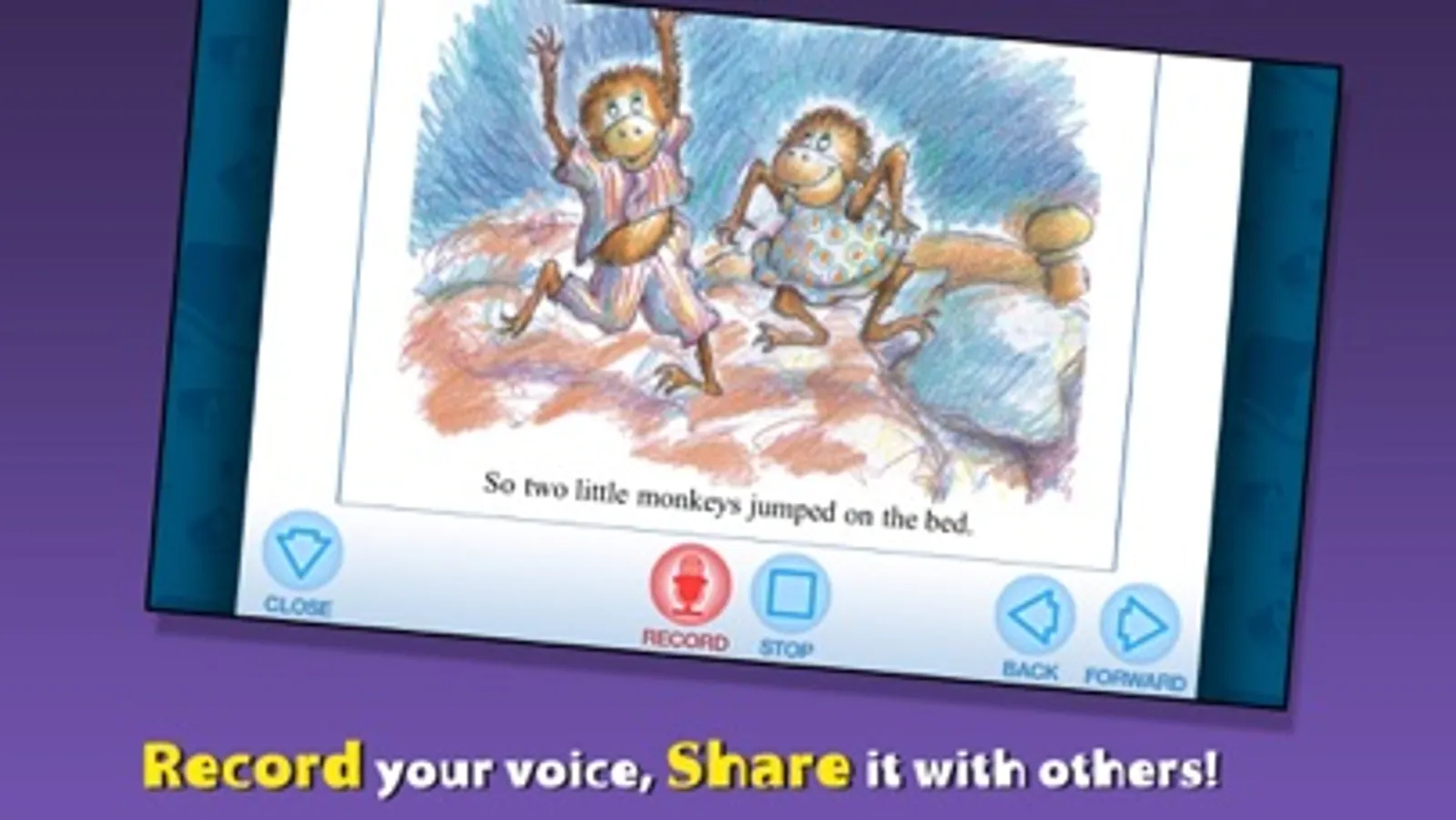 Join the Five Little Monkeys in this interactive book app as they jump on the bed after they say good night to Mama! Explore pictures, learn new vocabulary, and personalize the story with your own narration. Jump inside to find out what trouble the Monkeys get into as they jump on the bed!