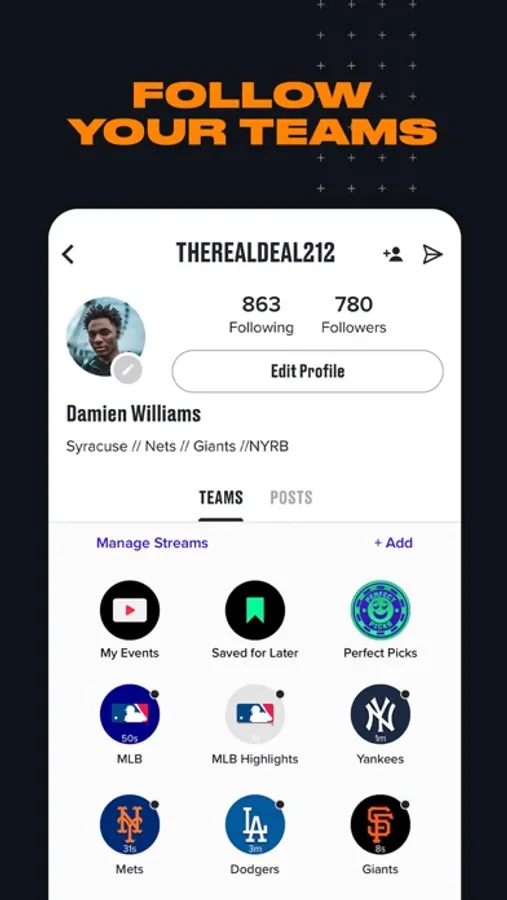 • Pick the teams you love and get real-time streams with hand-picked alerts so you know your team's news first.