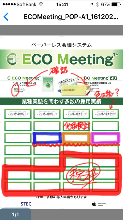 [6] iPadで加筆したマーカーや付箋を反映したPDFをダウンロード可能。