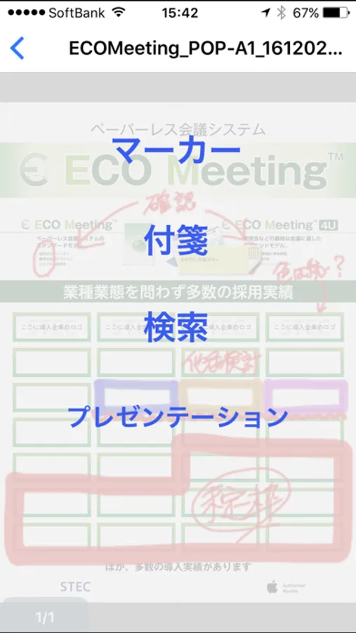 [1] 電子化した会議資料をiPadの優れたユーザインタフェースで直感的に閲覧。