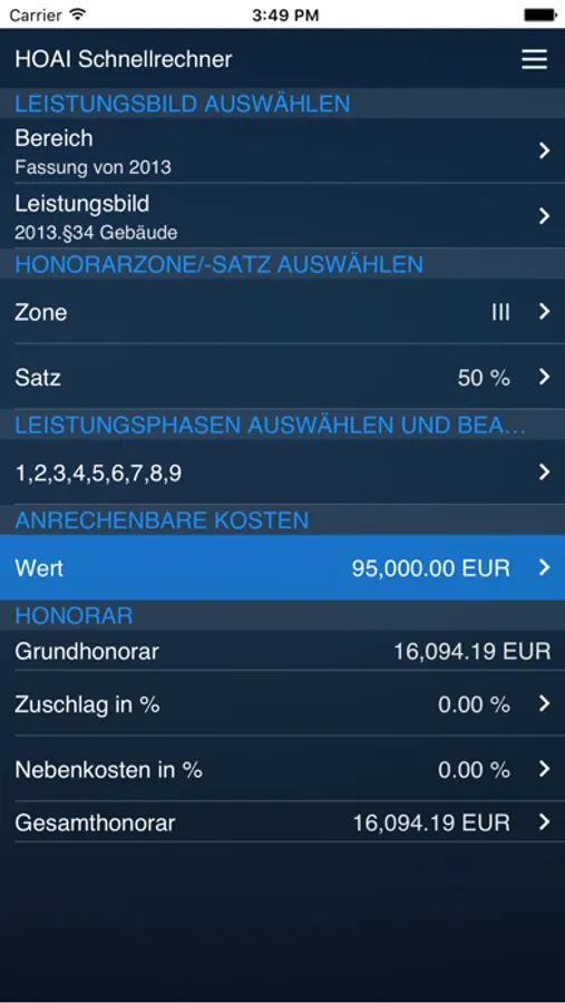 Der HOAI Schnellrechner bietet Ihnen die Möglichkeit, Honorarschätzungen für alle Leistungsbilder nach der HOAI 2021, 2013, 2009 und 2002 inkl. der Fortschreibungen nach RifT. Zusätzlich sind noch die Leistungsbilder für Projektsteuerung sowie EnEV enthalten.