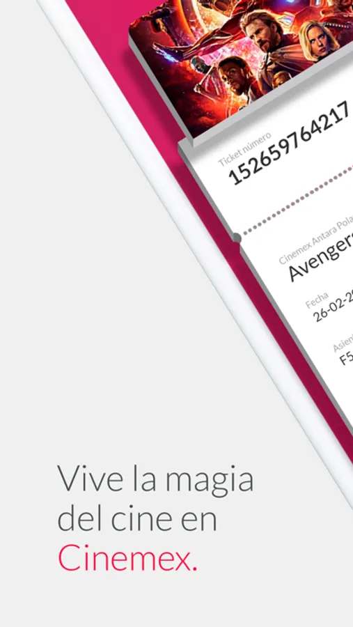 * Al descargar la aplicación por primera vez registra tu nombre y usuario de cinemex.com o crea uno nuevo para que todas tus consultas y compras queden almacenadas en tu teléfono.
