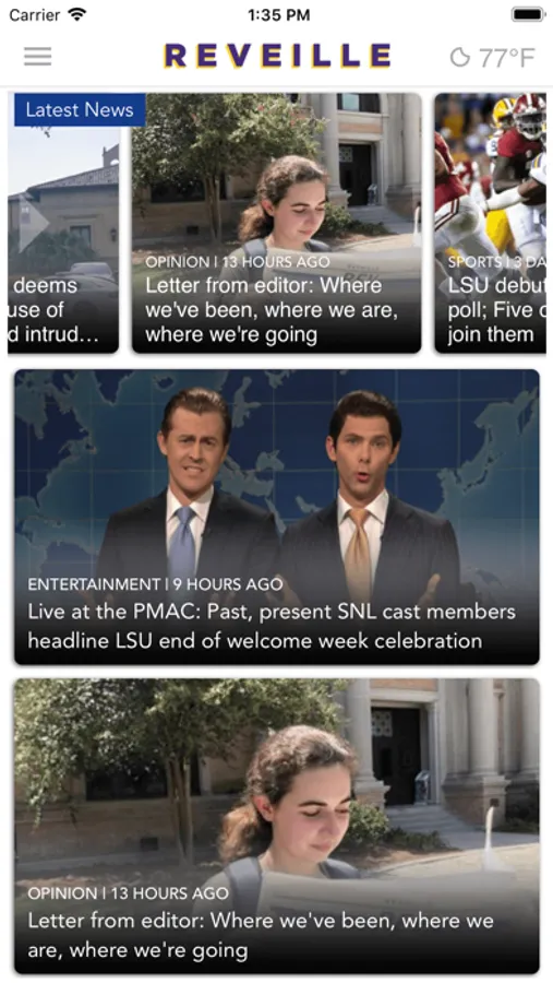 Your free mobile app for the award-winning Reveille and LSUReveille.com, the student-run newspaper at Louisiana State University in Baton Rouge, Louisiana. Get the app now to have 24-hour access to News that Roars from the home of the LSU Tigers, including breaking news notifications and access to regular email newsletters, weather, advertising and more.