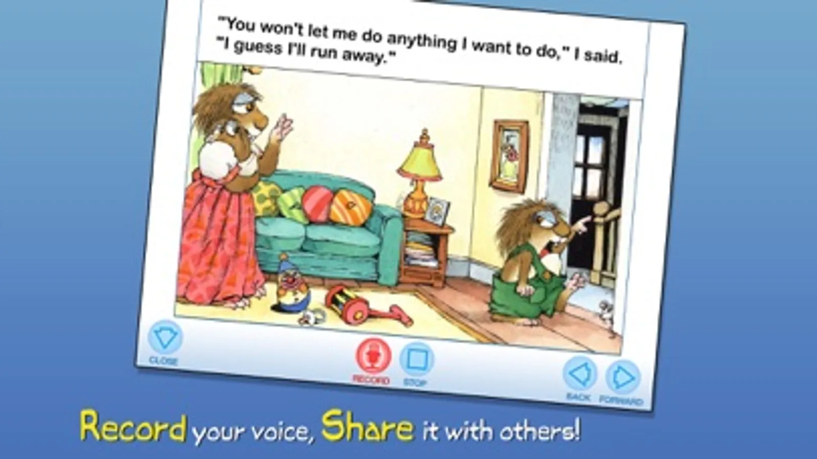 Join Little Critter in this interactive book app as he gets mad because everyone keeps telling him no! Explore pictures, learn new vocabulary, and personalize the story with your own narration. Will Little Critter get so mad that he runs away, or will his bad day be salvaged with a little help from a friend?