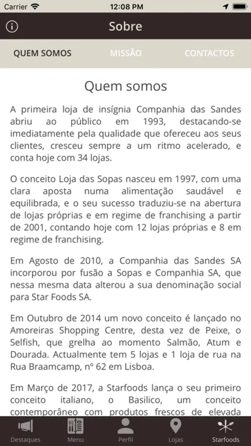 - Conhecer quais os Menus, Sandes e Sopas das marcas Starfoods.