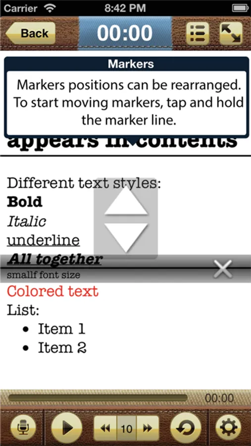 and fully functional RTF editor. The audio recorder allows recording speeches multiple times and listening to them.