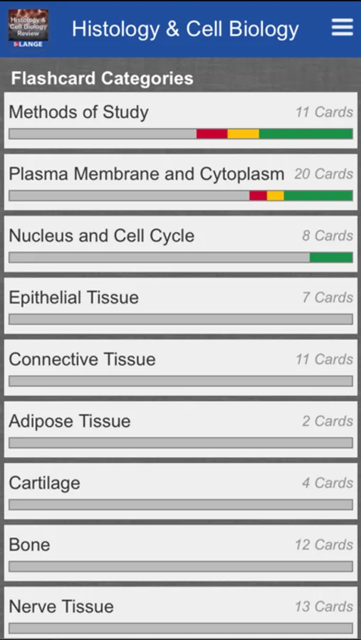 With over 200 flashcards organized into 24 major categories, this app provides a rigorous review of key concepts and clinical facts. From cell biology to the four basis tissue types to major organs and organ systems of the body, this app has it all.