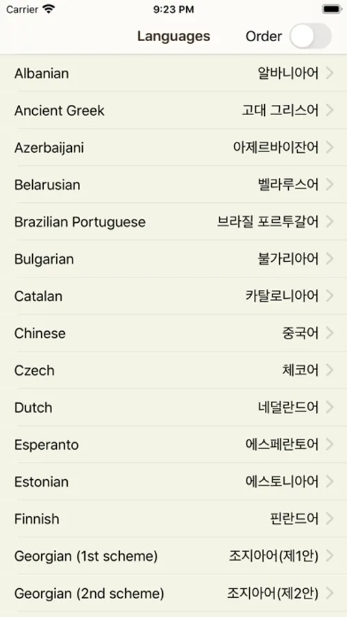 지원되는 언어 목록: 아제르바이잔어, 벨라루스어, 불가리아어, 카탈루냐어, 체코어, 웨일스어, 중세 웨일스어, 독일어, 그리스어, 고대 그리스어, 에스페란토, 에스토니아어, 핀란드어, 세르보크로아트어, 헝가리어, 아이슬란드어, 이탈리아어, 일본어, 조지아어, 라틴어, 라트비아어, 리투아니아어, 마케도니아어, 네덜란드어, 폴란드어, 포르투갈어, 브라질 포르투갈어,
