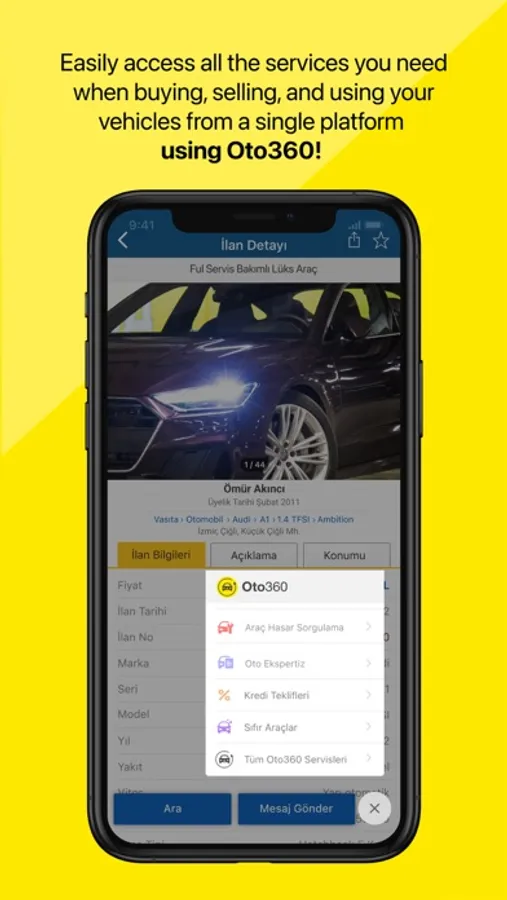 • You can browse unused or pre-owned car, SUV, commercial vehicle and motorcycle ads of world renowned brands including Mercedes, BMW, Volkswagen, Ford, Renault posted by the owners and car showrooms, add the vehicles you’re interested in to your favorites, and easily contact the sellers.