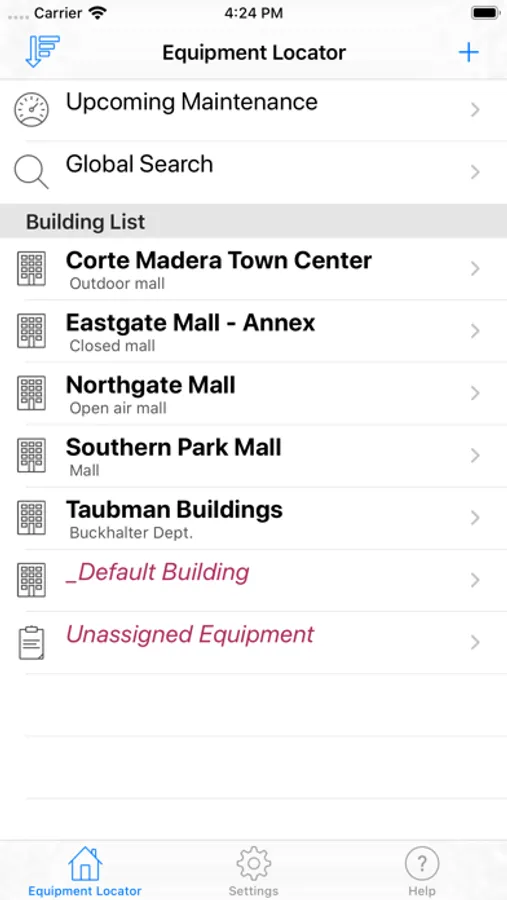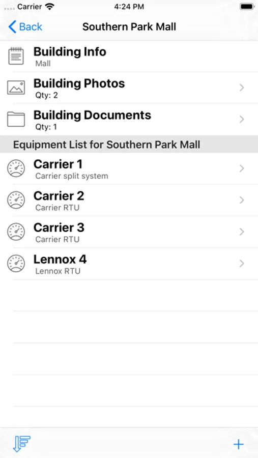 2. Add an unlimited number of equipment to each building and input information about the equipment along with photos and spec sheets