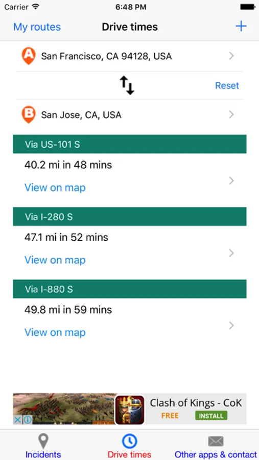 Ever got stuck on 101 in San Francisco Bay Area? Ever wondered how much time it will take you to drive from Sunnyvale to Oracle in Redwood City at 9AM? You are a couple of “touches” away. This app will provide you a quick view of all the incidents/accidents in the greater San Francisco Bay Area as reported into 511. It will also give you an approximate travel time based on 511 data.