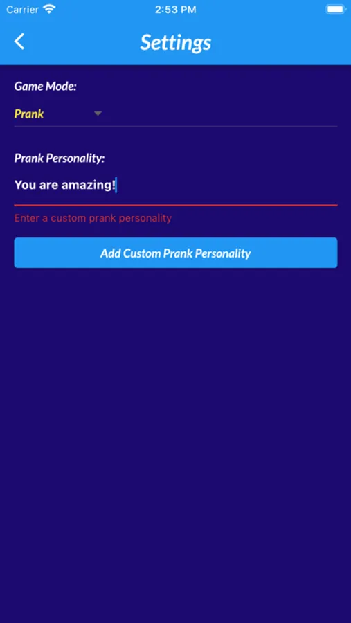 To use the 'prank' feature, secretly input the age, mental age, and personality before handing your phone to your friend. The results will be displayed after they play the game.