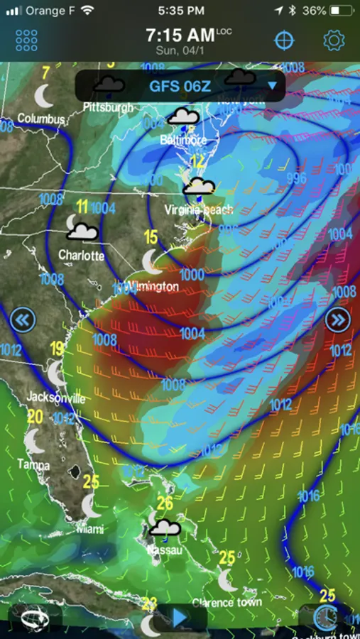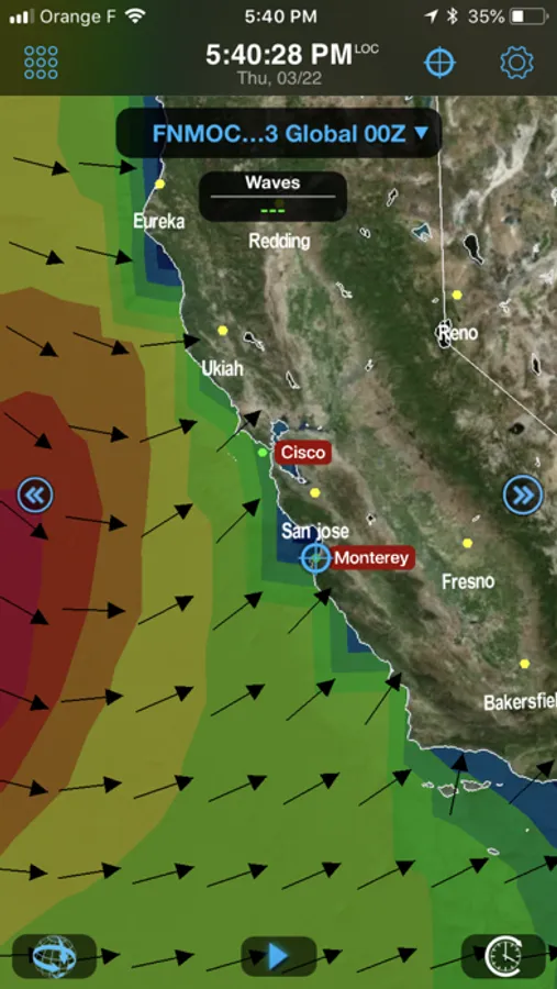 Use GFS model to get started. In addition, over 35 weather and oceanographic models are available with a yearly subscription (in-app purchase).