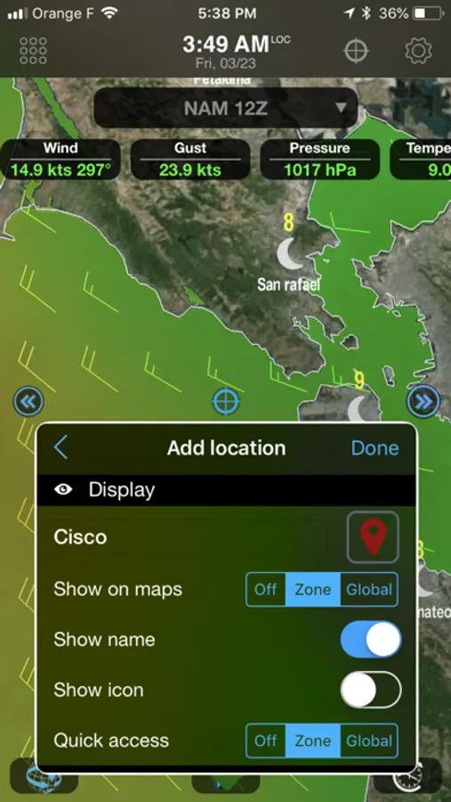 Create or import locations, combine them with GRIB forecast models and get a holistic view of the sea conditions.