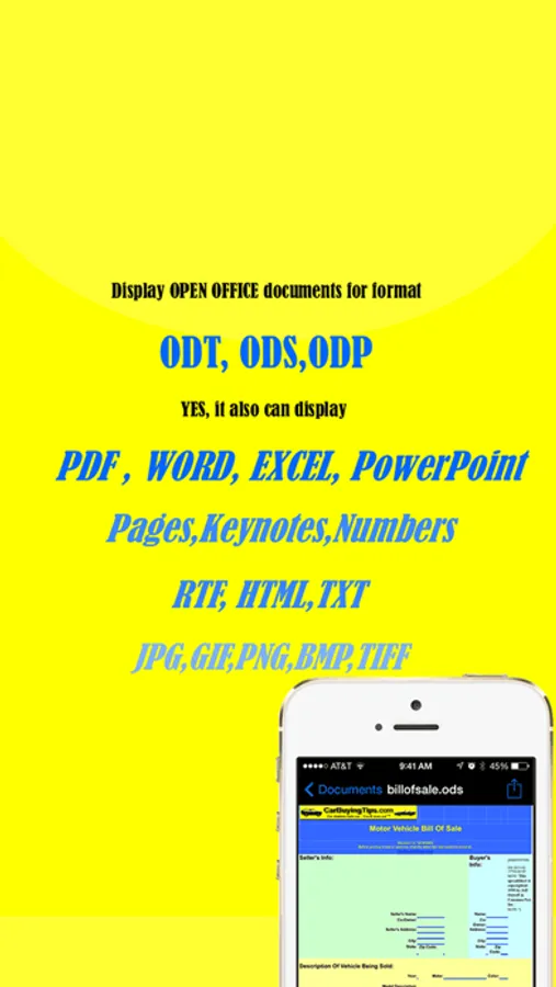1. Display Open Office documents, including Open Document formats ODT, ODS, ODP.
